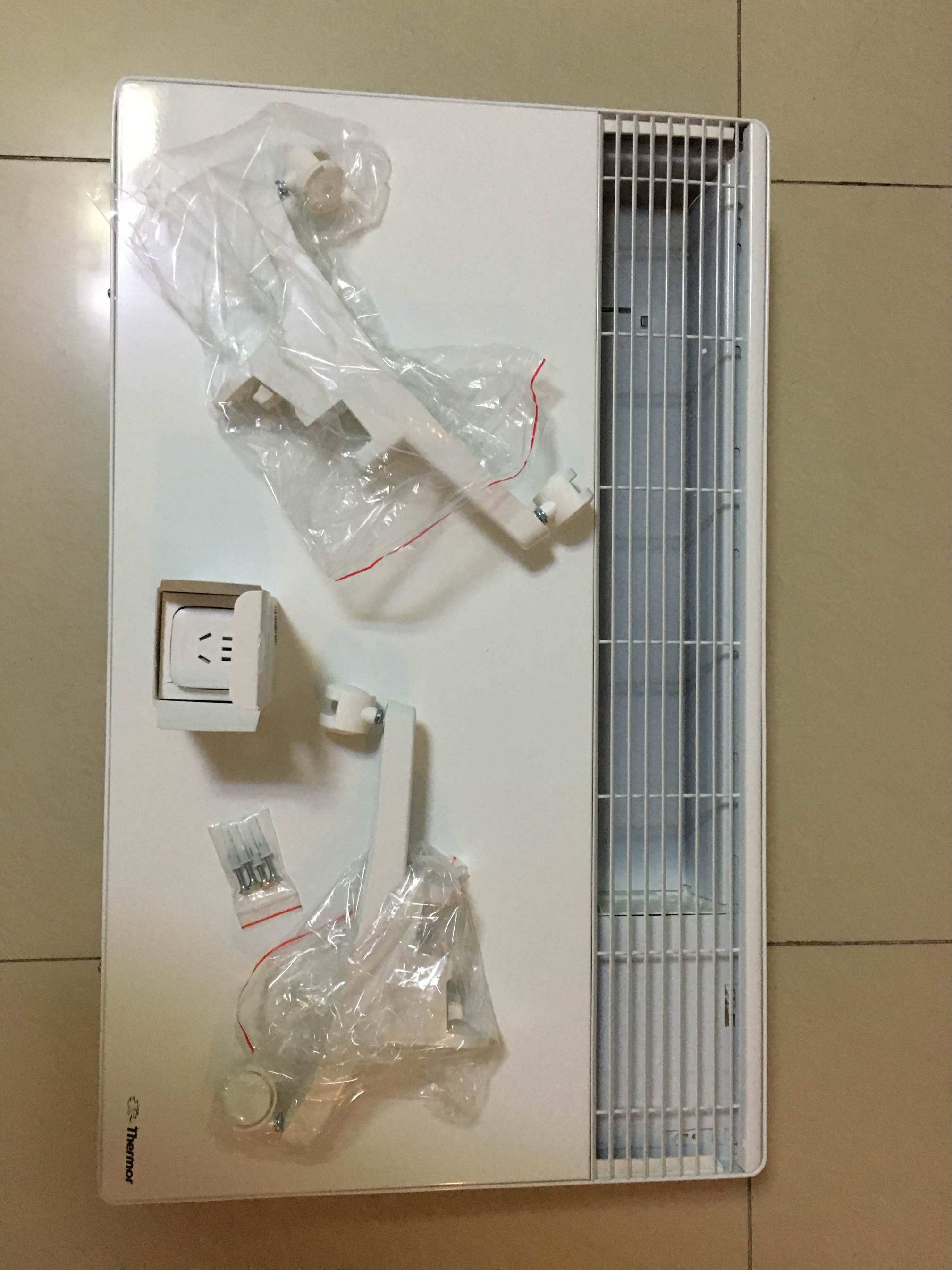 内部配件非常简单,不凌乱,就算没有说明书也可以正常安装使用。其中的亮点是随包装内带的智能插座,可以实现手机遥控。