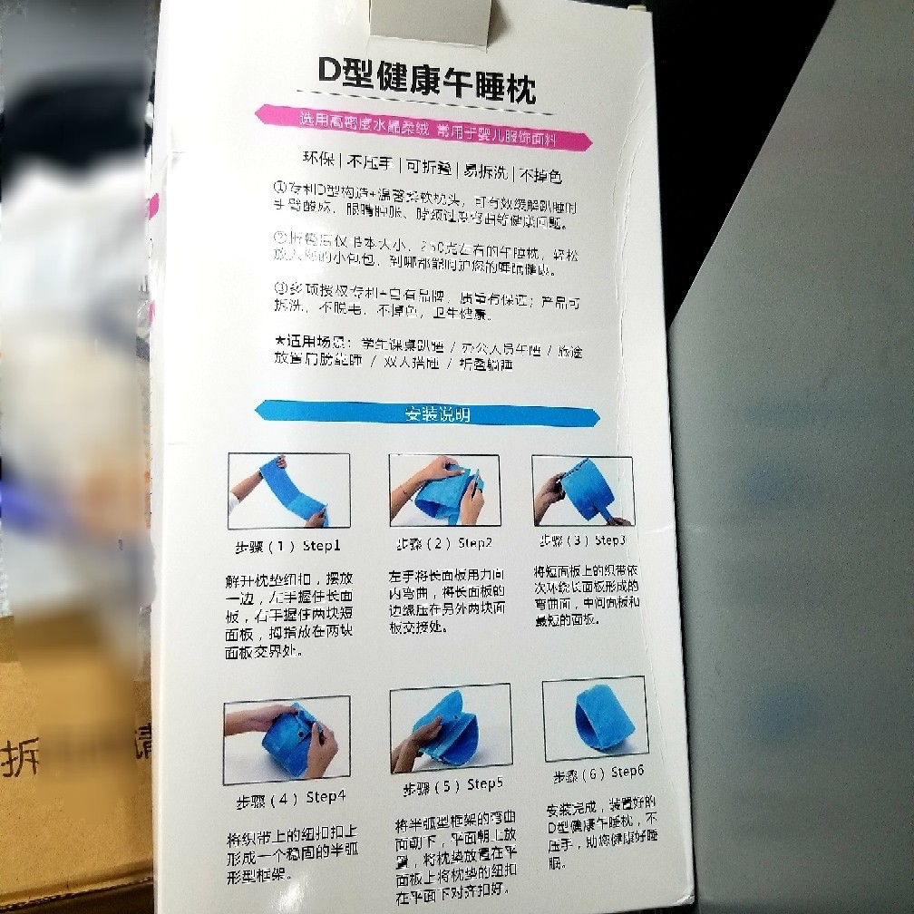 外观小巧,收纳方便,表面的绒面很柔软,底下的支撑板不晓得是什么材质,支撑度强,整体符合他的idea 愿天下苍生都能睡个好午觉~~